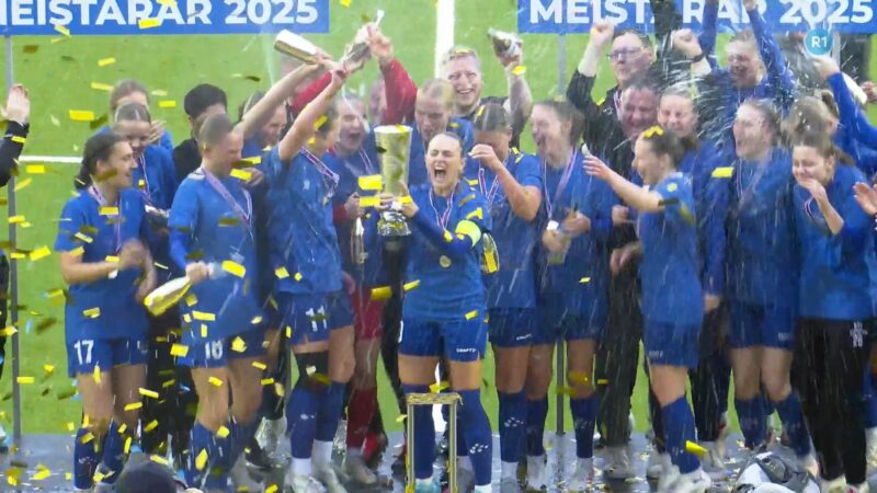 Kvinnur: Fagnurin var øgiligur í Klaksvík, tá ið dómarin hevði bríkslað fyri seinastu ferð. KÍ-kvinnurnar eru aftur føroyameistarar. HB tryggjaði sær við 4-0 sigri á Víkingi bronsu…
