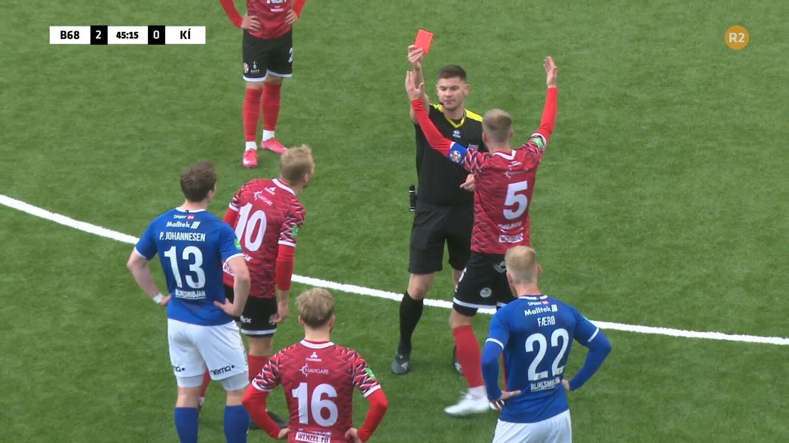 Mest undirhaldandi dysturin bleiv spældur á Toftum, har ið B68 og KÍ spældu 3-3 javnleik. Bæði liðini sóu reytt í fyrra hálvleiki. Gaston Nicolas Tellechea hjá KÍ bleiv útvístur, og tað bleiv Fríði Í Túni Petersen hjá B68 eisini.